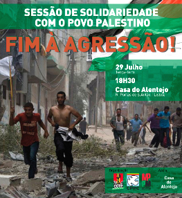A CGTP-IN, o CPPC e o MPPM realizam hoje, 29 de Julho, às 18:30 horas, na Casa do Alentejo, em Lisboa, uma sessão de solidariedade e esclarecimento sobre a actual situação na Palestina, em particular no território da Faixa de Gaza.